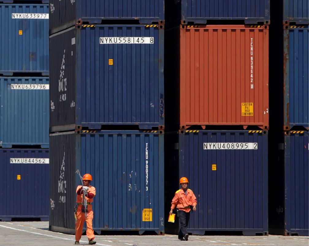 很簡單,一般來說,緊密挨個(gè)兒的,是空箱;留縫兒堆放的,是重箱。
